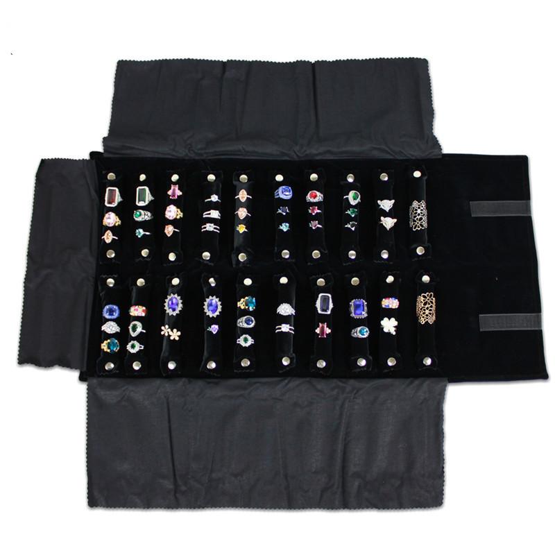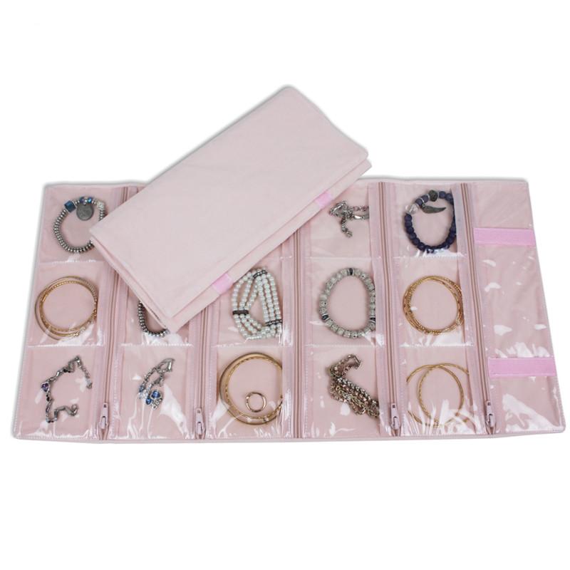 Fashion Black Velvet Zipper Jewelry Roll Bag for Jewelry Ring Earrings Organizer Storage Bag Portable Necklace Display Cases