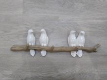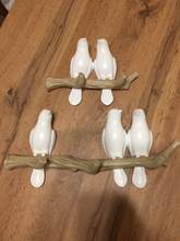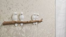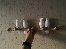 Cute birds. Not yet hung, but look on the wall will be neat and stylish. It came to Moscow a little more than two weeks. Packed carefully, everything got intact and safe. Note that the hooks are quite thick, not all keys can be hung. In general, the goods are satisfied.
